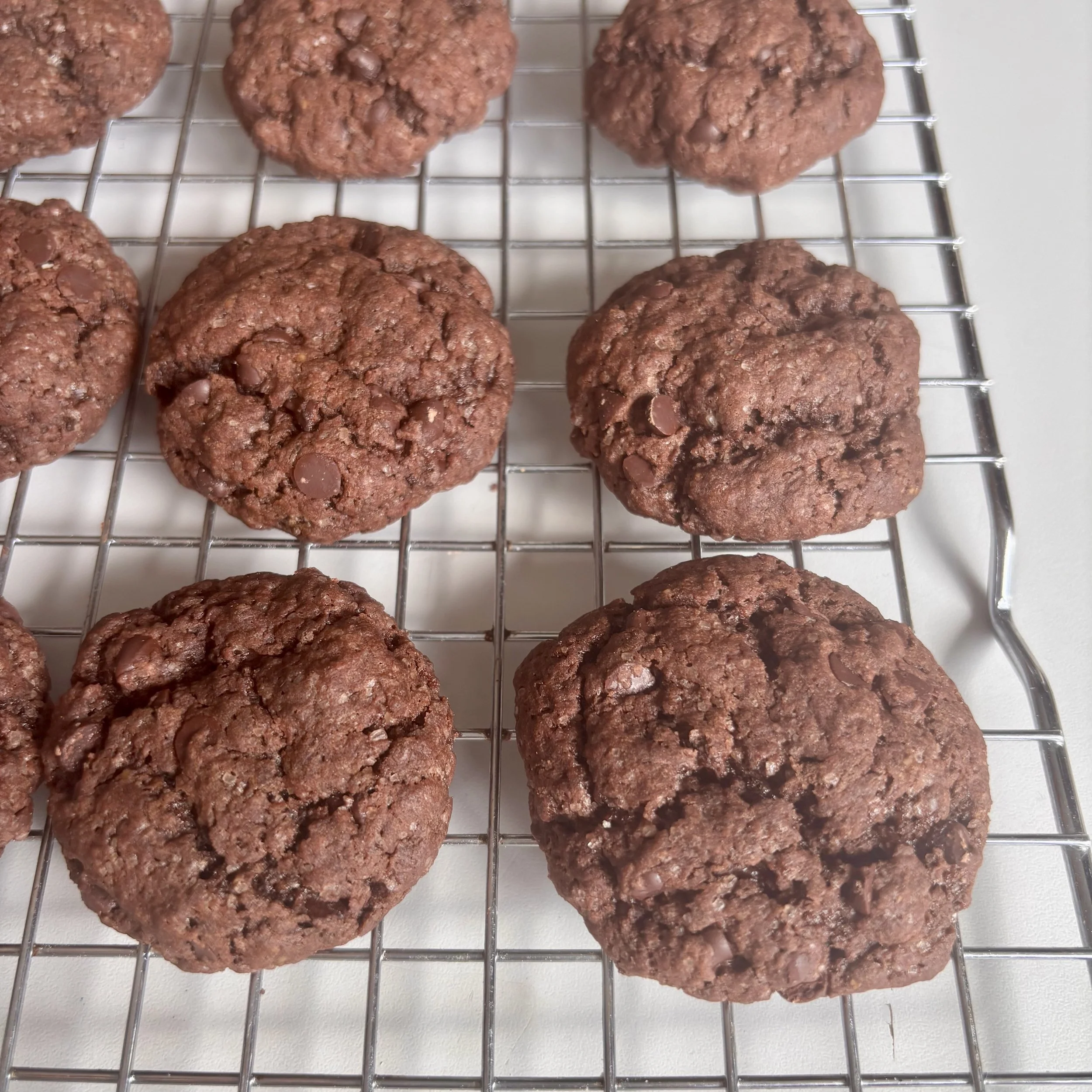 These cookies should really be called chocolate chocolate chip cookies! They are chewy, intensely chocolaty treats, great with a cup of coffee.